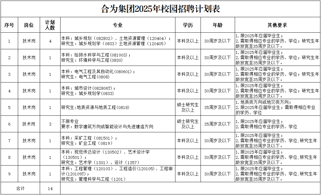 現(xiàn)公開(kāi)招聘2025應(yīng)屆高校畢業(yè)生14人,具體如下: