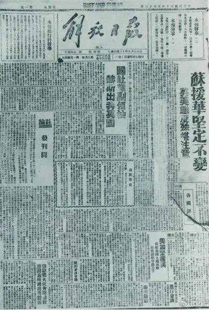圖為1941年5月16日在延安創(chuàng)刊的中共中央機關(guān)報《解放日報》。
