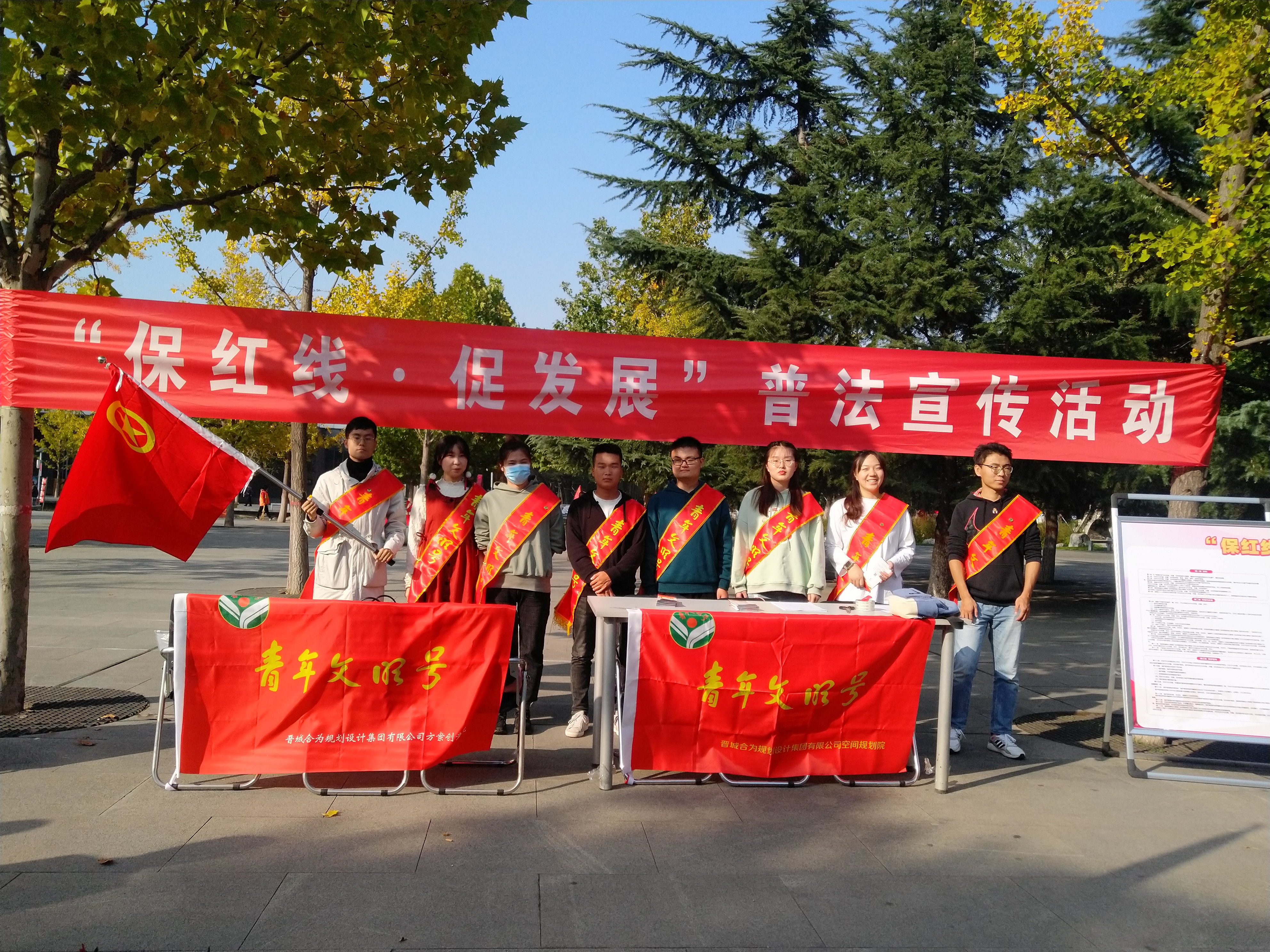 為慶祝偉大祖國七十二周年華誕,積極展示合為集團爭創(chuàng)省級青年文明號的良好形象,2021年10月13日下午,集團團委、空間規(guī)劃院和方案創(chuàng)意院聯(lián)合組織開展“保紅線·促發(fā)展”的普法宣傳活動。活動采取布置宣傳角、展示宣傳展板、分發(fā)修訂版條例等形式,在我市兒童公園內(nèi)突出宣傳了《土地管理法實施條例(2021年修訂)》、《歷史文化名城名鎮(zhèn)名村保護條例》等法律法規(guī)。